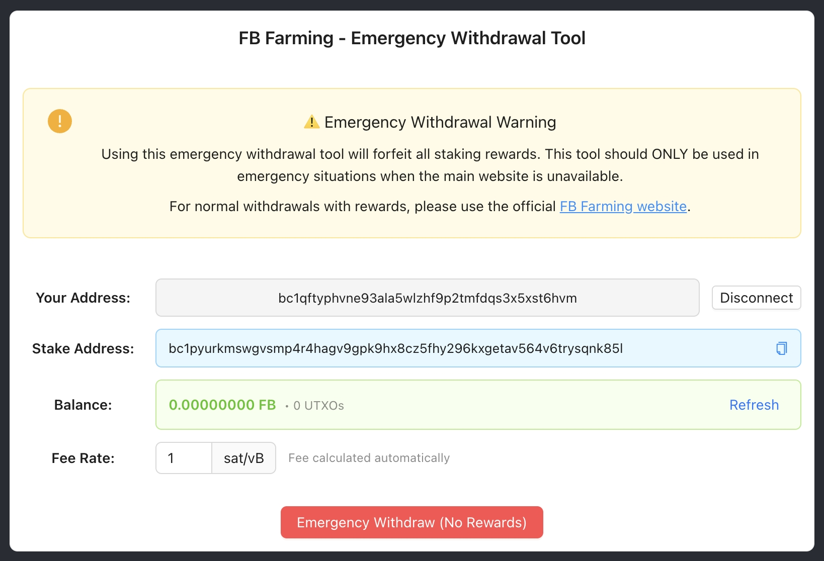 - The wallet sends FB to that address (on-chain UTXO); once confirmed, the staking is considered active;