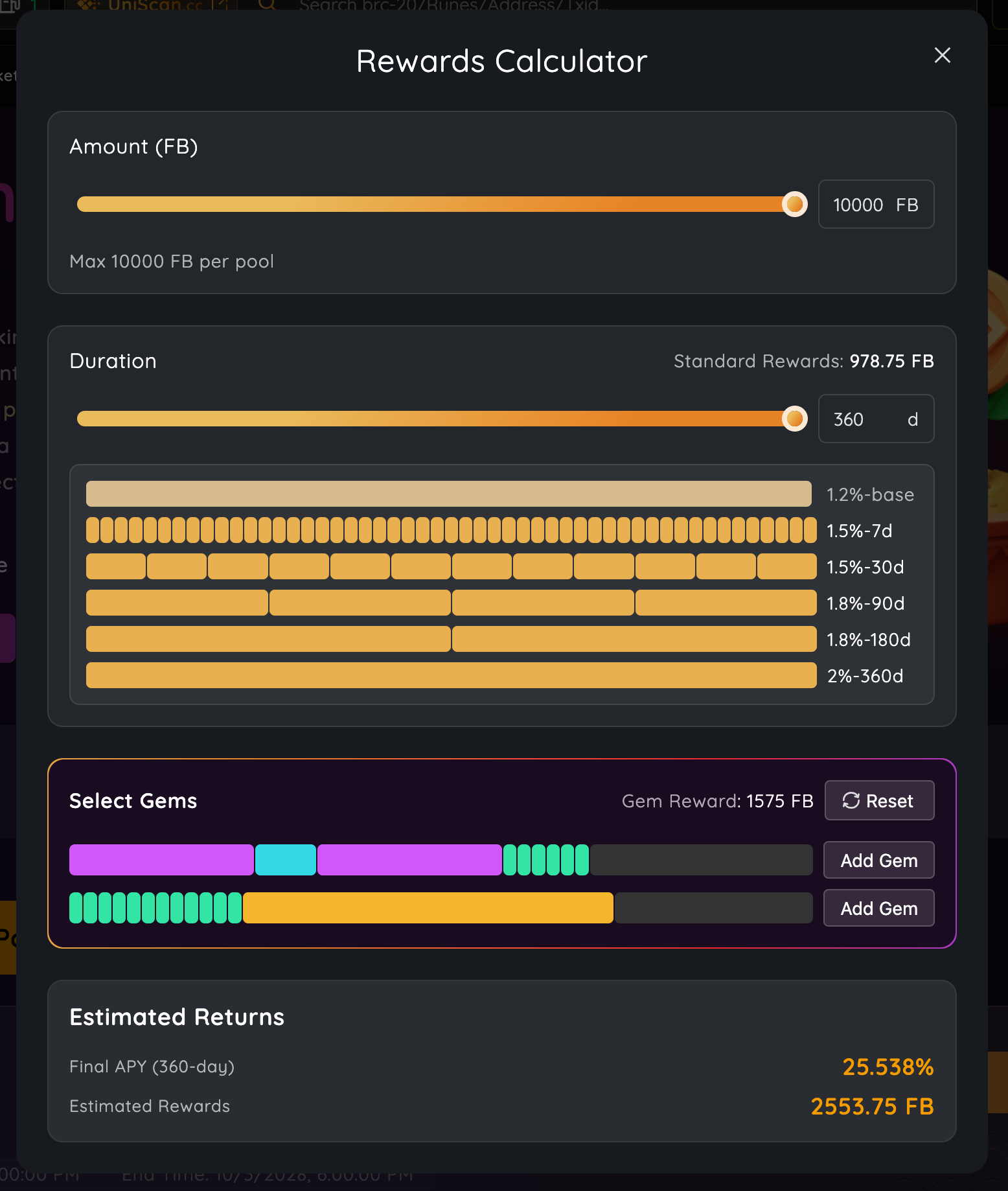 For example, staking 10,000 FB may yield a composite reward combining: